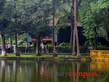 Independent Vietnam's new president eschewed the heavy extravagance of the nearby French Governor's mansion. Instead he built this simple open wooden house on stilts surrounded by gardens, towering trees and a small lake.