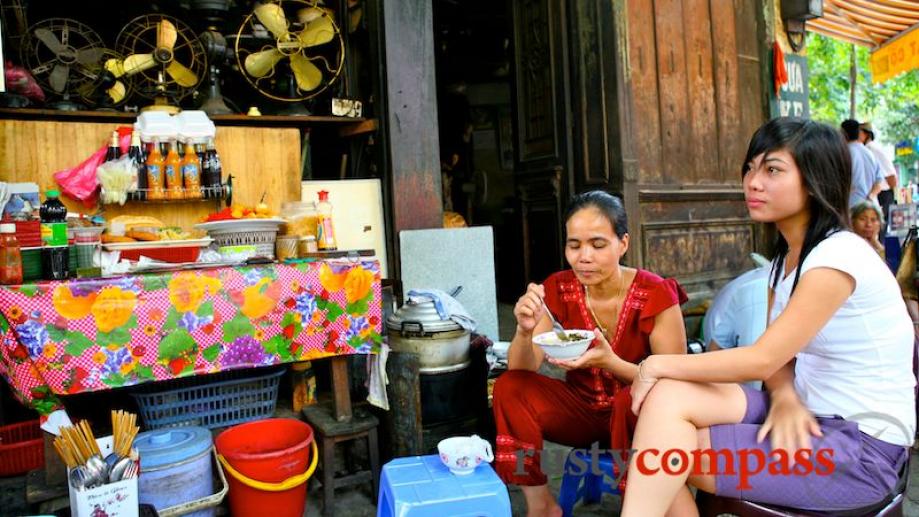 Mother and daughter at the old fan shop - with its sticky rice stall out the front.