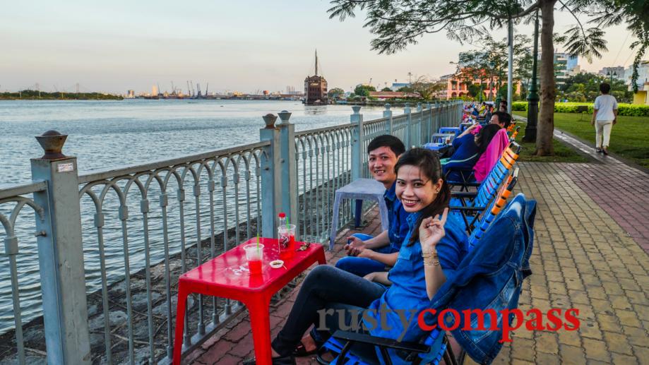 Be sure to take a late afternoon or early morning walk along the Saigon riverfront. It's a surprisingly mellow spot in the midst of the city chaos. This building is Nha Rong - Ho Chi Minh Museum
