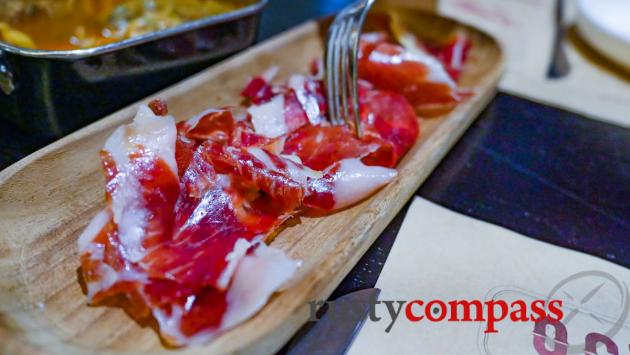 Tapas start from around 140K VND and hit around 400K. There's a good selection of wines including a handful by the glass.