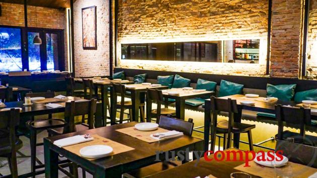 Thabault found an atmospheric, hidden space on a downtown Saigon street that’s becoming a little hub of food and drinks. They scrubbed the render back to reveal colonial-era brickwork, put some mood lighting in, and devoted an entire wall to a stage-like open kitchen - as a chef designing a restaurant should. There’s a long bar if you want a close-up view of the kitchen action.